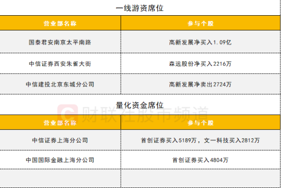 ②首创证券获中信上海分公司和中金上海分公司两家量化席位买入,合计买入金额近亿元。