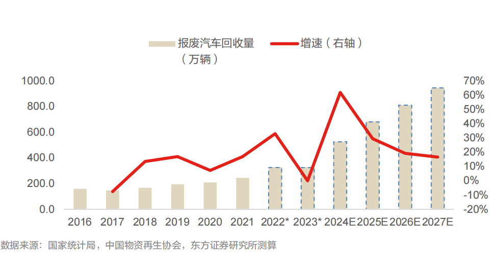 ②汽车报废高峰或已来临,2027年报废汽车回收量有望达到944万辆。
