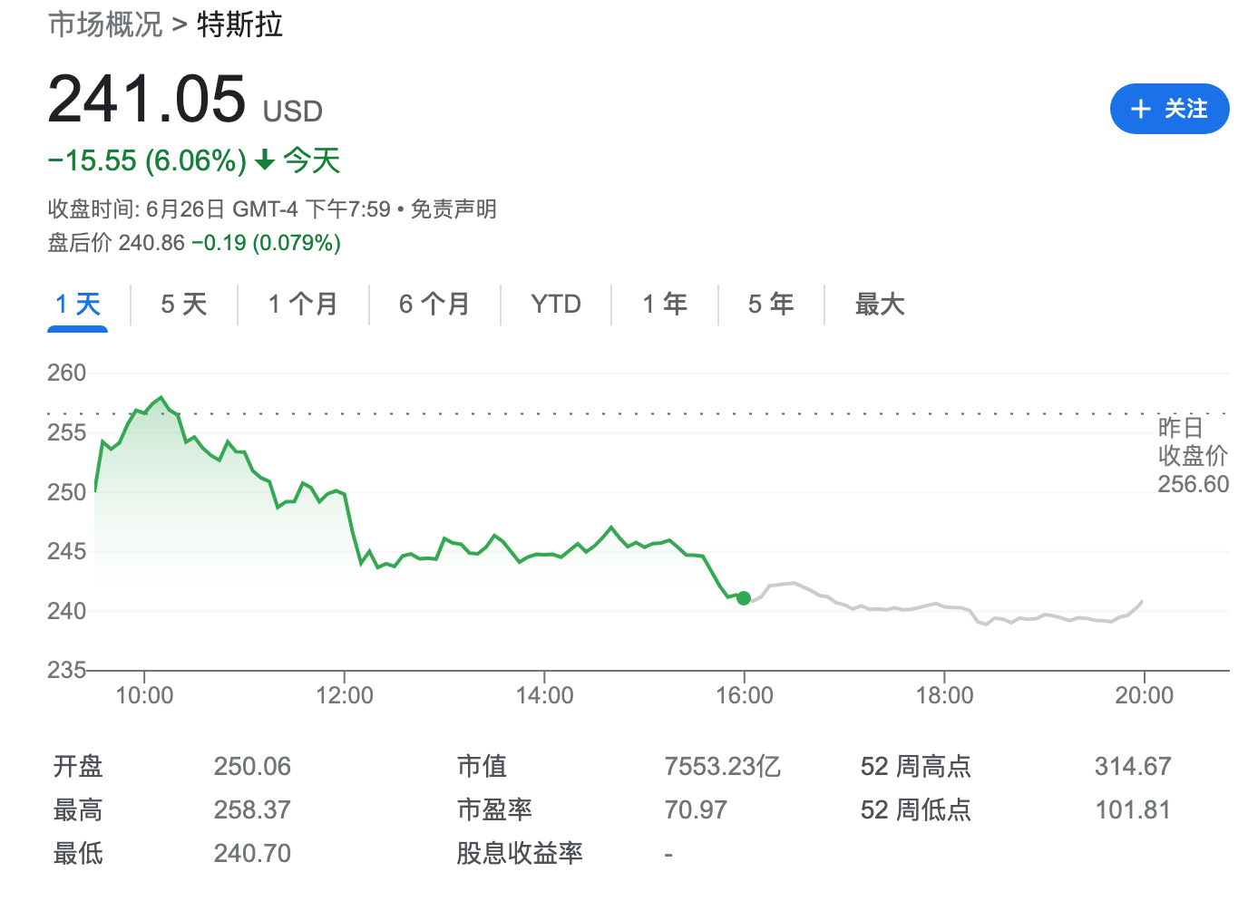 受高盛下调评级的消息影响,特斯拉股价周一跌超6%,创1月31日以来单日最大跌幅。