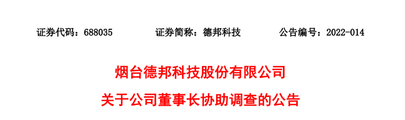 11月29日盘后,德邦科技公告,公司董事长解海华因个人原因正协助监察机关调查。目前公司生产经营未受到实质性影响,经营情况一切正常。