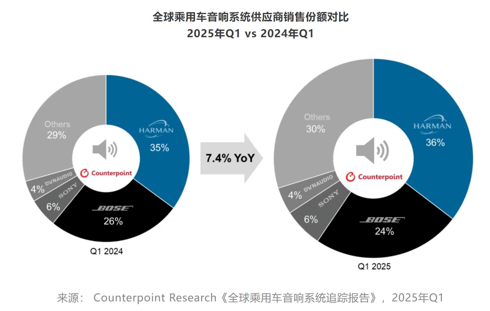 Counterpoint:全球乘用车音响系统市场由Harman和Bose主导 两家厂商合计贡献近60%的总销售额