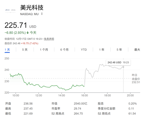 财报公布后,美光科技股价在盘后交易中大涨逾7%。今年以来,存储芯片需求居高不下推动美光股价一路走高,年内涨幅已高达约160%。