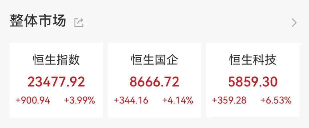 港股方面,恒生指数大涨3.99%,恒生科技指数更是暴涨6.53%。成份股中,中国联通、联想集团、阿里巴巴-W分别暴涨15.72%、15.45%、14.56%;小米集团-W、京东集团-SW、阿里健康、百度集团-SW等一众公司集体涨逾4%。