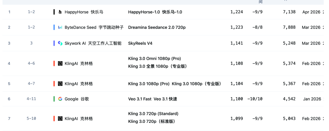 近日,一款名为HappyHorse-1.0的匿名模型(未标注厂商)开始在视频榜单登顶多项测评。据权威AI评测平台Artificial Analysis AI Video Arena排行榜,HappyHorse-1.0以更高的Elo分数压过字节跳动旗下Seedance 2.0、快手旗下可灵AI、Google Veo 3 Fast等视频模型,一举成为榜首。Elo评分系统(Elo Rating System)是一种用于计算竞技对弈中相对技能水平的数学方法,属于AI模型中的“段位分”。
