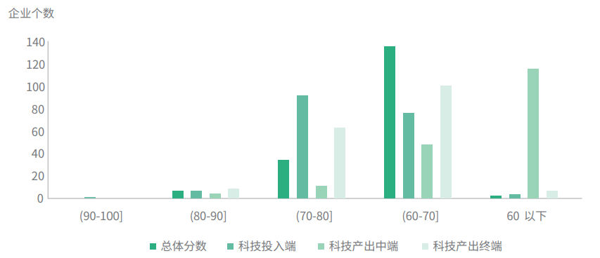 不过,《白皮书》发现,从指标得分的分布情况来看,保险企业的保险科技创新差异较大,总体而言,保险科技在保险行业中的潜力尚待释放。此外,保险科技投入端的表现明显优于保险科技产出中端与终端,这说明保险科技从投入到转化的效率存在较大改进空间。