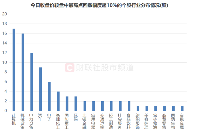 注:今日收盘价较盘中最高点回撤幅度超10%的个股行业分布情况(截至11月6日收盘)