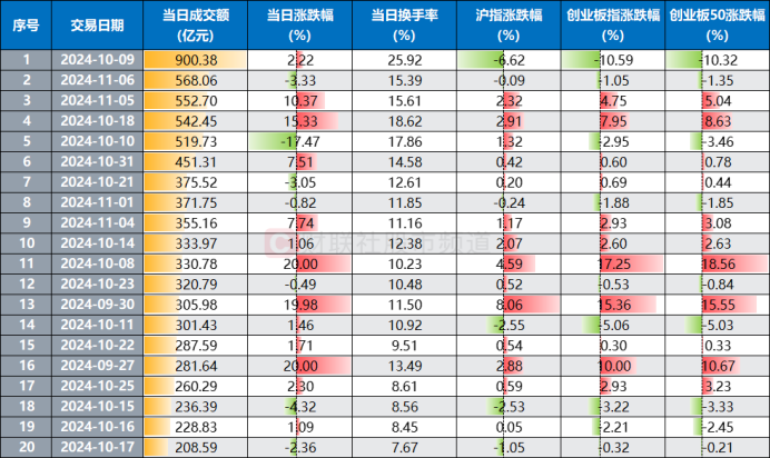 注:东方财富历史前20高成交额记录(截至11月6日收盘)