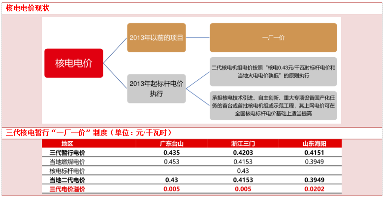 首先,从价格端来看,目前我国的核电电价政策为核电标杆电价与“一厂一价”并行。