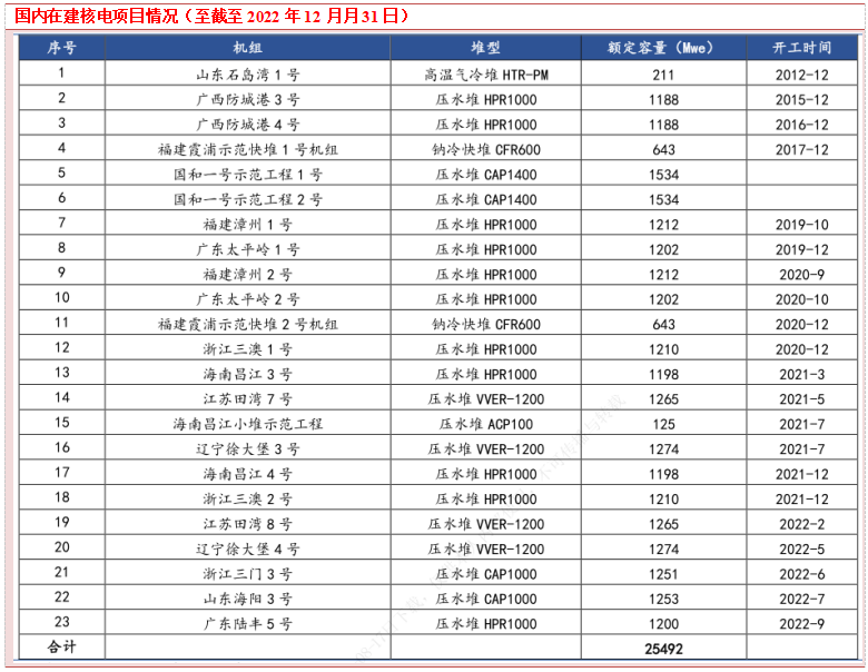 参考我国已经投产的三代核电机组包括中国广核旗下的台山核电(EPR)、中国核电旗下三门核电(AP1000)以及“华龙一号”。