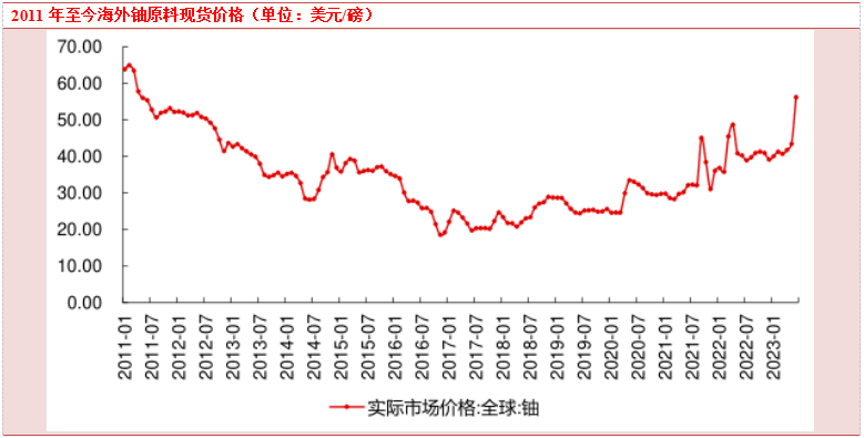 核燃料的原材料——铀,作为一种稀有的放射性金属,除核工业用途外几乎无任何其他应用,宏观经济运行周期基本不会通过需求的强弱影响其价格的走势,同时核电企业出于保供考虑所签订的长期供应合同也进一步平滑了核电企业的燃料成本。