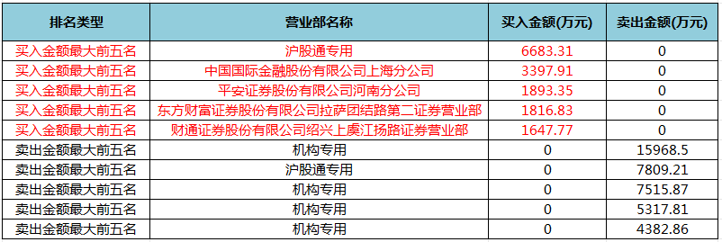 金地集团今天跌停。盘后数据显示,4个机构出现在龙虎榜单上,合计净卖出3.32亿元;沪股通专用席位买入6683.31万元,同时卖出7809.21万元;中国国际金融股份有限公司上海分公司买入3397.91万元;平安证券股份有限公司河南分公司买入1893.35万元。
