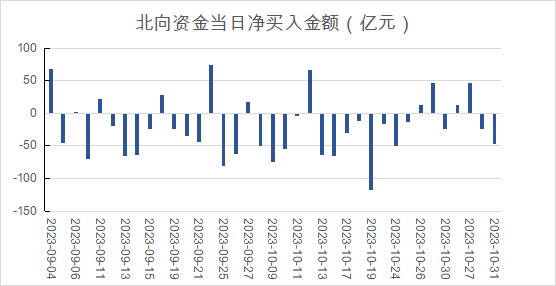 10月31日,北向资金的净流出规模有所扩大,陆股通整日净流出规模为47.53亿元。其中,沪股通整日净流出14.64亿元,深股通整日净流出32.98亿元。