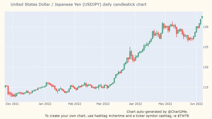 行情数据显示,美元兑日元周二早间大涨近70点,最新交投于132.55附近,盘初曾一度刷新2002年4月以来的最高位132.74。