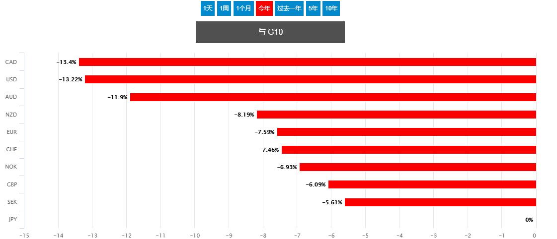 日元在今年之所以持续走弱,主因还是由于立场鸽派的日本央行所坚持的收益率曲线控制(YCC)政策,令该国债券收益率保持稳定,而其他国家的债券收益率则普遍在各自央行的鹰派货币政策推动下大幅攀升,其中尤以美债收益率为代表,息差因素令日元持续面临抛压。