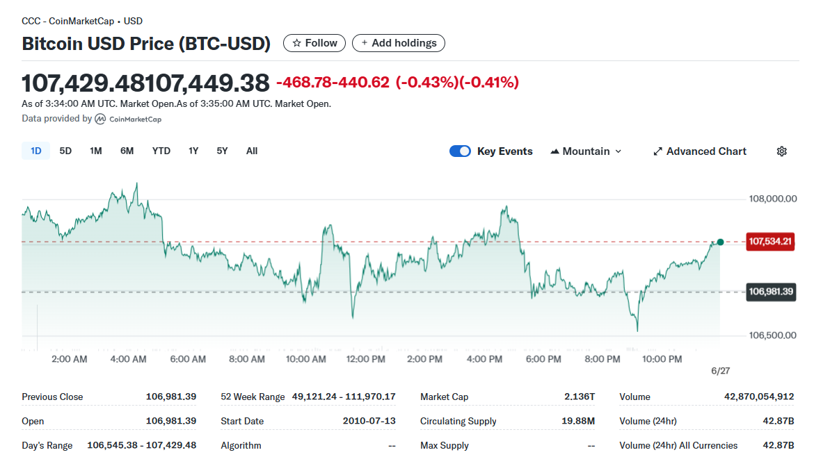 由于与关税相关的波动以及地缘政治和经济方面的担忧,比特币的价格今年一直波动较大。最近几天,比特币价格上涨至10.7万美元,今年以来上涨了14%。今年5月,其价格还一度触及11.1万美元以上的历史高点。