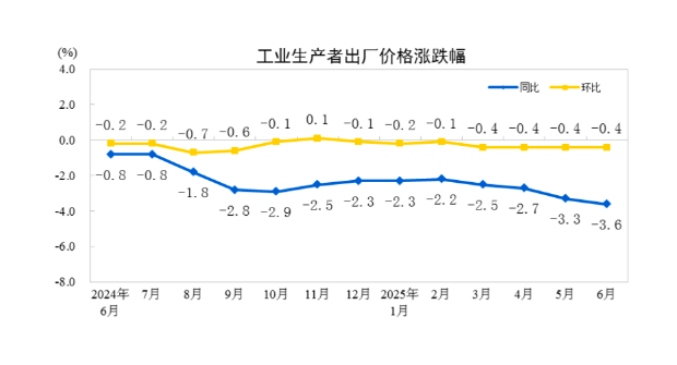 PPI方面,6月PPI环比下降0.4%,降幅与上月相同。董莉娟分析,影响PPI环比下降的主要原因:一是国内部分原材料制造业价格季节性下行;二是绿电增加带动能源价格下降;三是一些出口占比较高的行业价格承压。