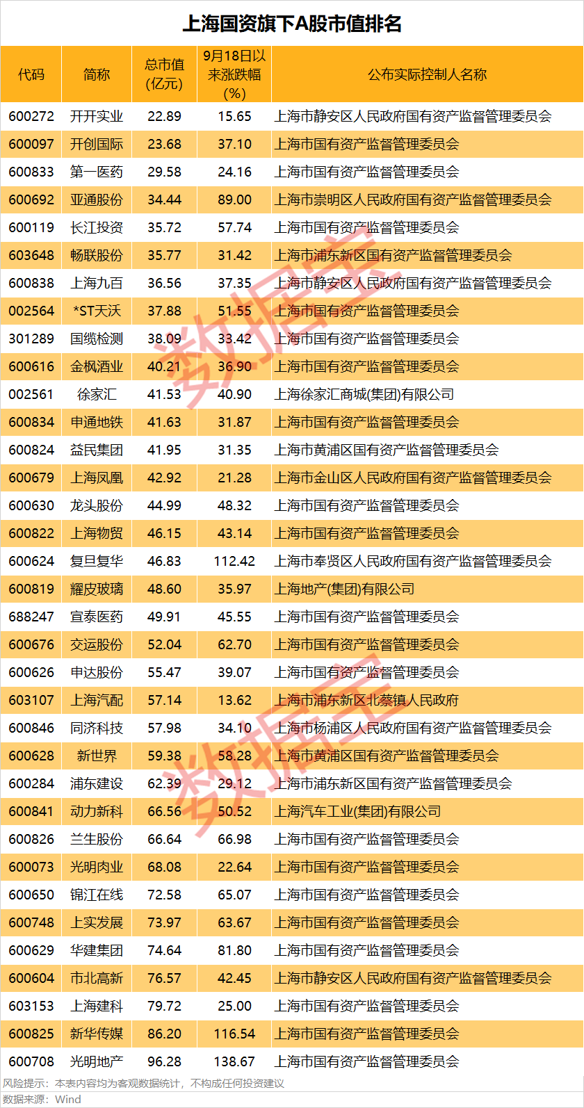 上海国资旗下公司有望直接受益于行动方案。据统计,有37只上海国资旗下A股市值低于百亿元。其中,开开实业、开创国际、第一医药等个股市值均低于30亿元,亚通股份、长江投资、畅联股份、上海九百、*ST天沃等市值低于40亿元。