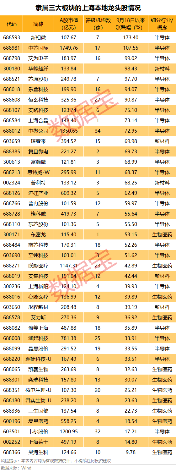 据数据宝统计,不包含央企、国企在内,上述三个板块中,市值超过百亿元的上海本地股合计有41只。