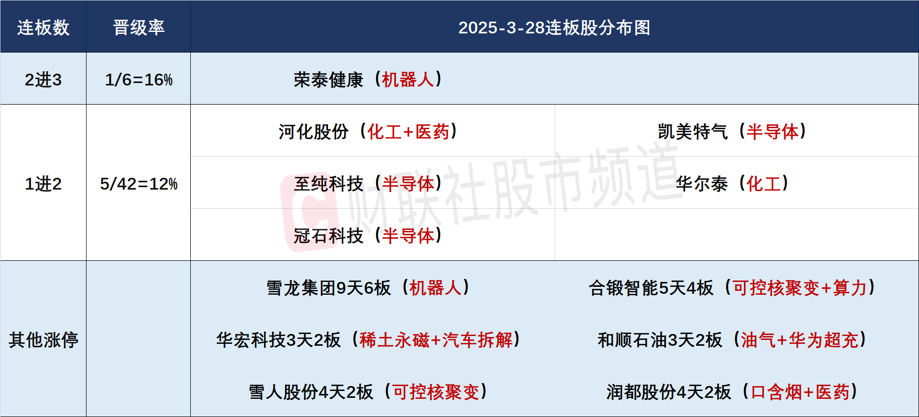 连板股晋级率降至12.5%,荣泰健康成为市场唯一3板以上连板股,昨日两只3板以上连板股双双断板跌停,其中昨日缩量3进4的中毅达全天低开低走封死跌停,直接引发化工为首的涨价概念的大面积降温。而大连重工、南方精工、神开股份的2连跌停使得机器人和深海科技两大近期人气板块持续退潮。尽管前期人气股大位科技早盘一度涨停尝试带动算力产业链展开修复,加上可控核聚变概念盘中受到消息刺激展开资金回流,但均受制于成交量能萎缩缺乏持续性。而新元科技昨晚公告遭证监会立案全天封死20CM一字跌停,微盘股指数再度遭遇情绪杀,收盘大跌超2%,随着个股整体亏钱效应的居高不下,市场短线已经临近冰点,关注下周能否涌现出一些具备资金持续抱团的新方向。