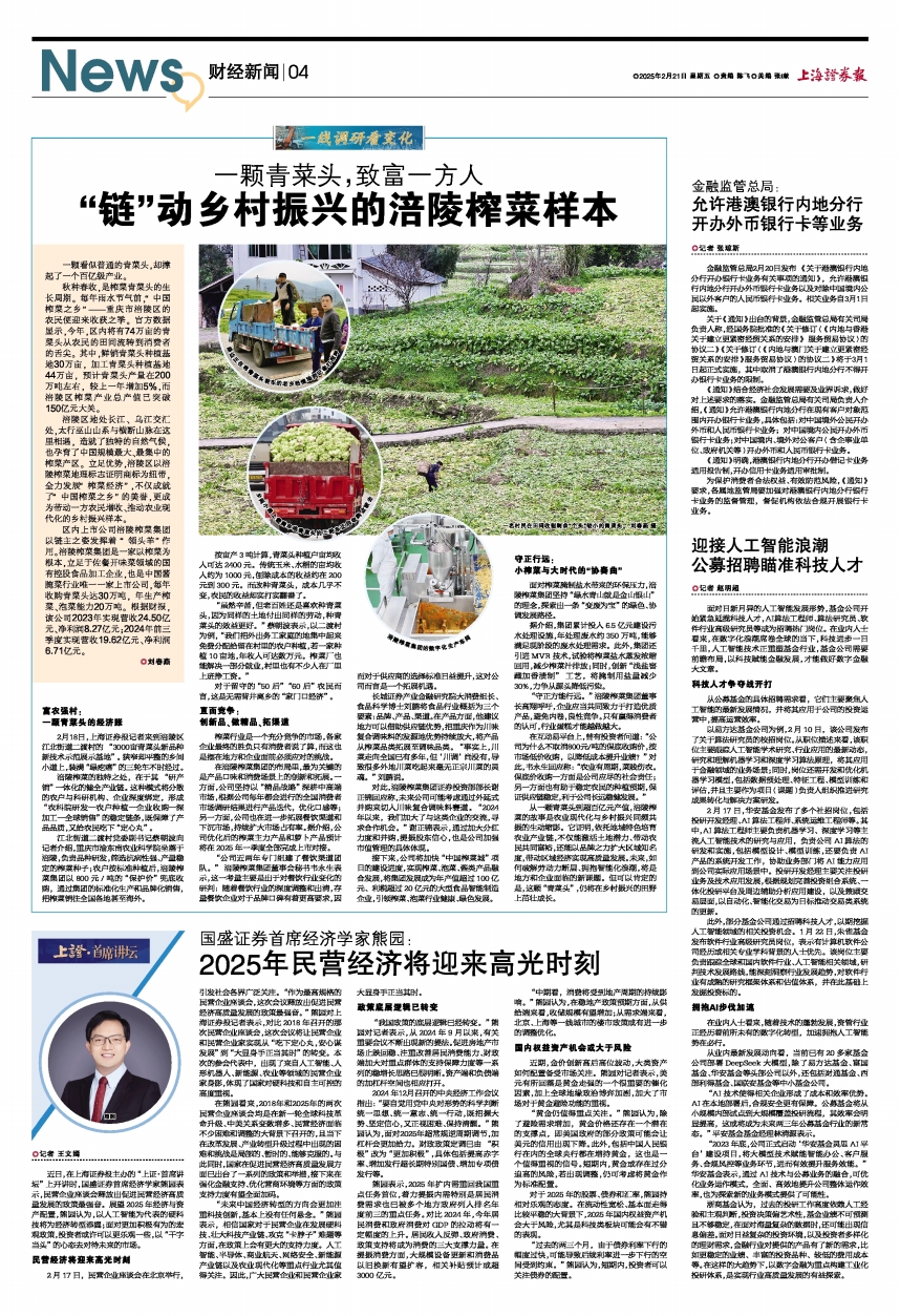 “未来中国经济转型的方向会更加注重科技创新,基本上没有任何悬念。”熊园表示,相信国家对于民营企业在发展硬科技、壮大科技产业链、攻克“卡脖子”难题等方面,在政策上会有更大的支持力度。人工智能、半导体、商业航天、网络安全、新能源产业链以及农业现代化等重点行业尤其值得关注。因此,广大民营企业和民营企业家大显身手正当其时。