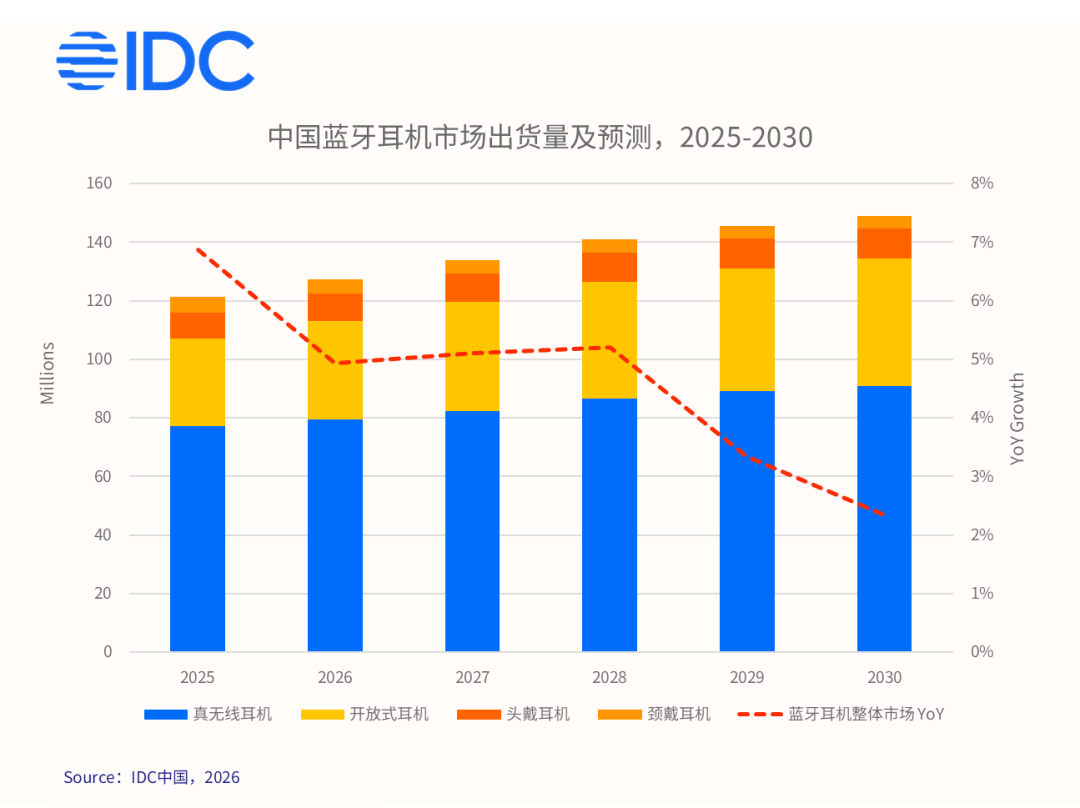 IDC:2025年中国蓝牙耳机市场出货量达到12137万台 同比增长6.9%