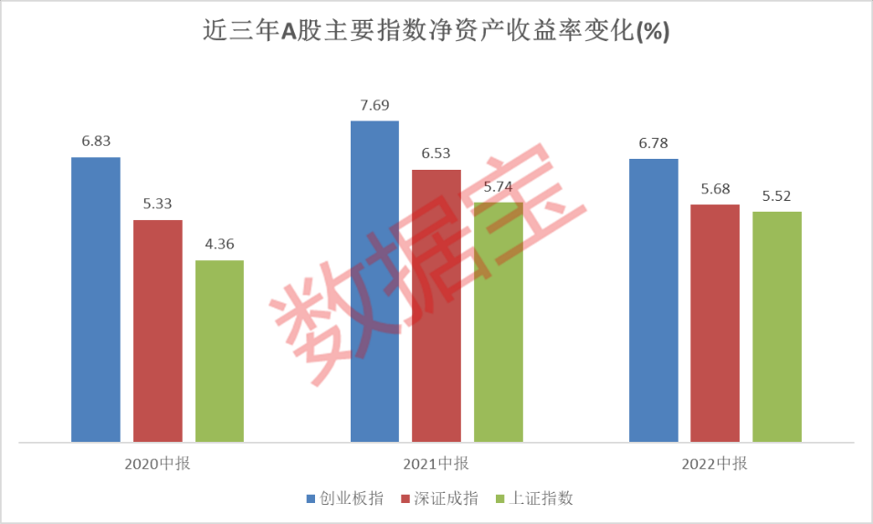 净资产收益率是衡量上市公司经营情况的重要指标之一,例如巴菲特的投资理念是“选择净资产收益率超过20%的企业”。数据宝根据上市公司半年度报告对A股市场平均ROE进行了梳理。