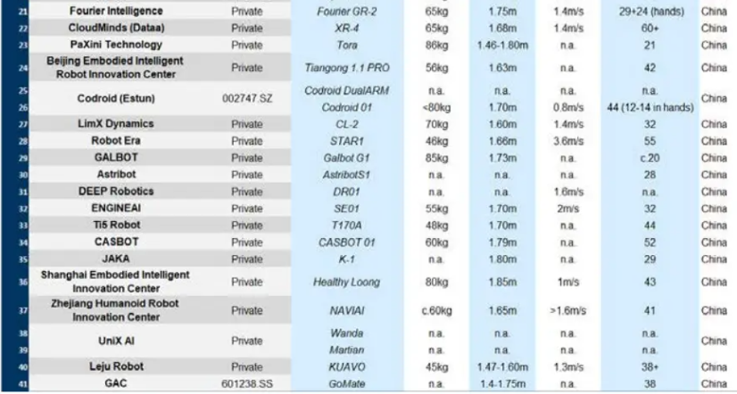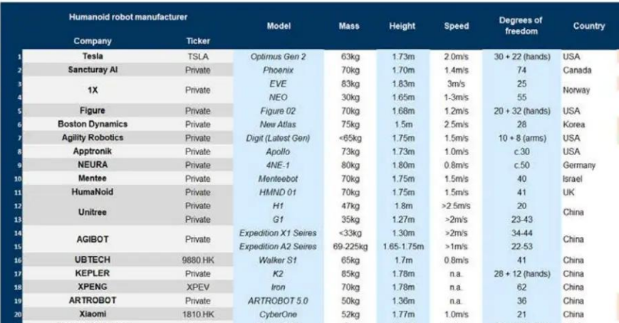 图表 :多家机器人制造商正进入量产阶段,例如美国的特斯拉、敏捷机器人公司(Agility Robotics)、Figure AI,以及中国的优必选(UBTech)、傅利叶智能(Mapping)和达闼机器人(CloudMinds )等全球范围内的人形机器人制造商。