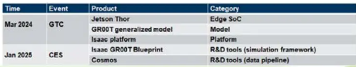 图表:英伟达机器人人工智能相关产品规划及发布时间线
