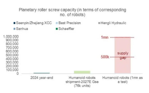 行星滚柱丝杠的产能需要扩充,其面临的供需缺口甚至更大。