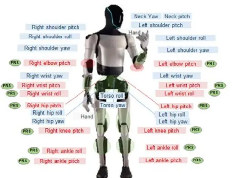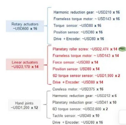 图表:高端机器人(擎天柱二代,Optimus Gen2)的部件拆解示意图