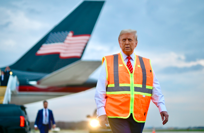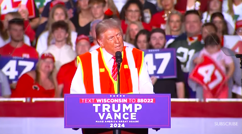 特朗普随后直接乘坐着这辆垃圾车前往了威斯康星州的竞选集会,并在集会中一直穿着这件橙色背心。