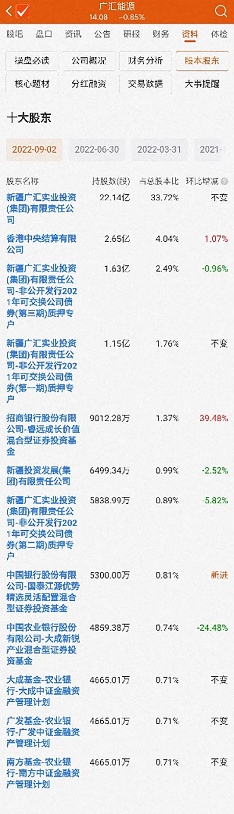从最新打法上来看,傅鹏博选择了“乘胜追击”。从广汇能源最新前十大股东来看,截至9月2日,睿远成长价值混合持股数量已增至9012.28万股。