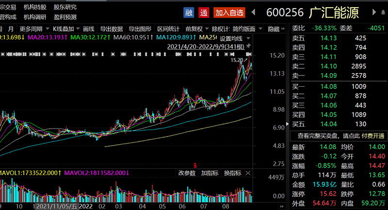 从广汇能源的业务来看,集上游煤炭开采、油气勘探生产,中游资源清洁转化高效利用,下游物流运输与终端市场于一体。公司上半年的业绩也颇为亮眼,具体而言,2022年上半年公司实现归母净利润51.3亿元,同比增长265%;营业收入213.2亿元,同比增长111%。