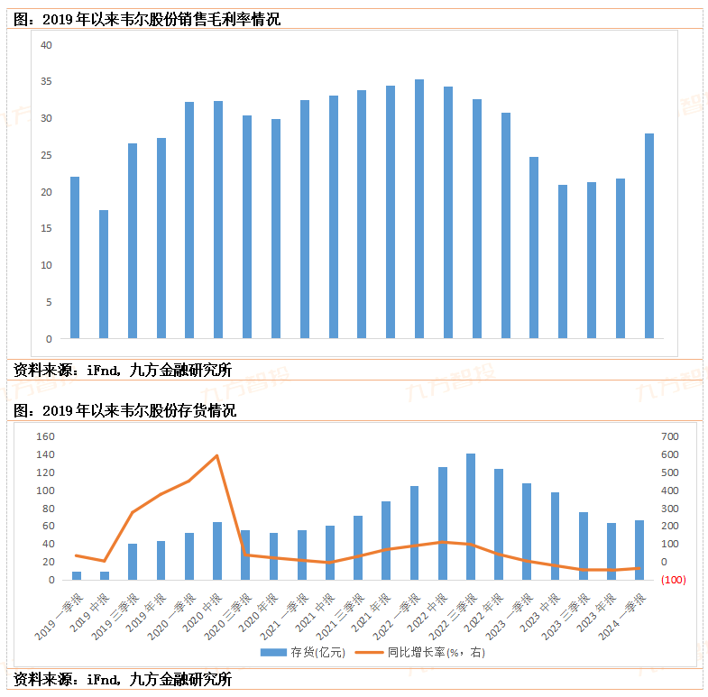 从韦尔股份营业收入、归属净利润以及毛利率、存货等多方面的最新数据(毛利率、存货为Q1)来看,韦尔股份这一国内设计芯片领域龙头业务正在快速恢复。值得一提的是,由于公司2023年快速清库存,到24Q1存货水平已经降至2021Q2同期水平,存货周转天数已经从2023年底的204.4天,下降至2024Q1的143.7天,目前公司存货水平相对健康。
