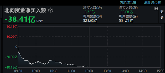 北向资金方面,上午半个交易日北向资金净卖出约38亿元。
