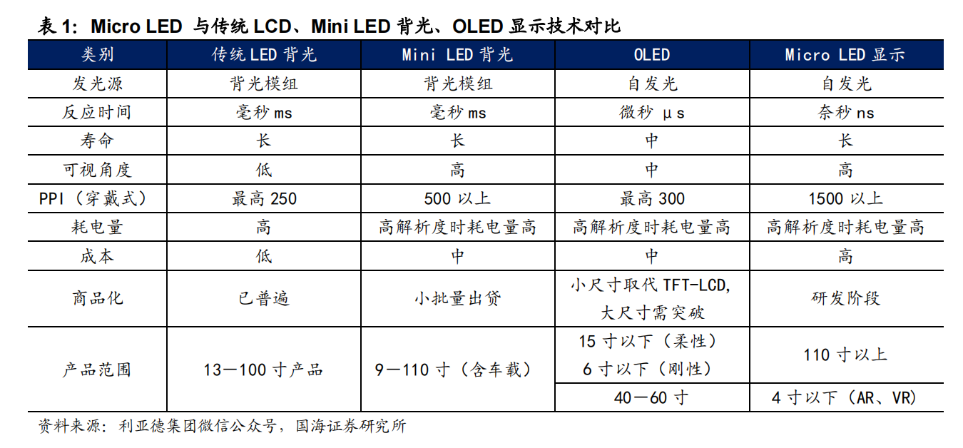国海证券分析师姚健指出,Micro LED被公认为未来显示技术的主流方向,目前尚处于研发阶段,新兴应用市场需求增长驱动下,大规模商业化有望加速落地。