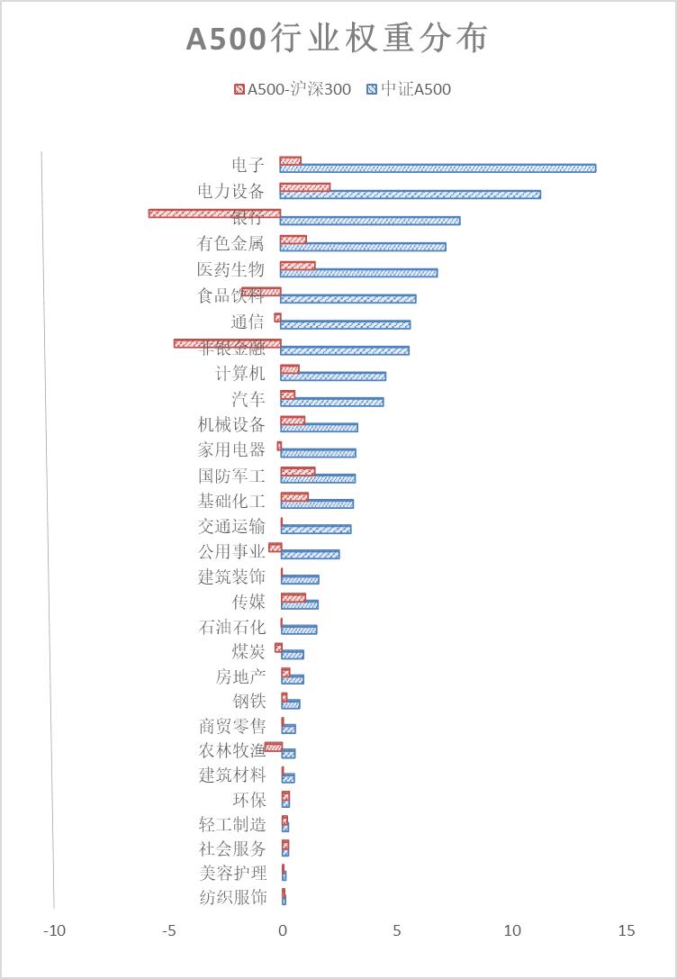 行业分布均衡,符合时代发展:与沪深300偏重金融、传统消费等旧周期不同,A500指数在AI产业链(电子、计算机、传媒)、电力设备与新能源、医药生物、国防军工、有色金属等新兴成长及顺周期行业的权重显著更高。行业分布与当前中国“新质生产力”的发展方向高度一致,更符合经济转型期的产业投资逻辑,同时也更为契合目前市场的科技成长风格。