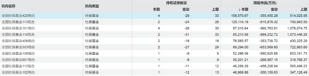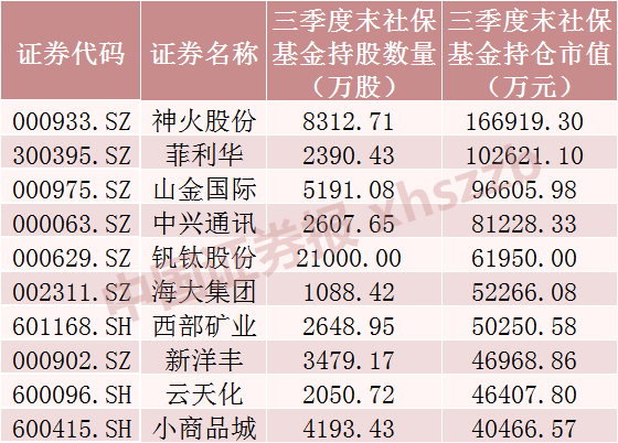 上市公司已披露三季报显示的持仓市值居前社保基金组合