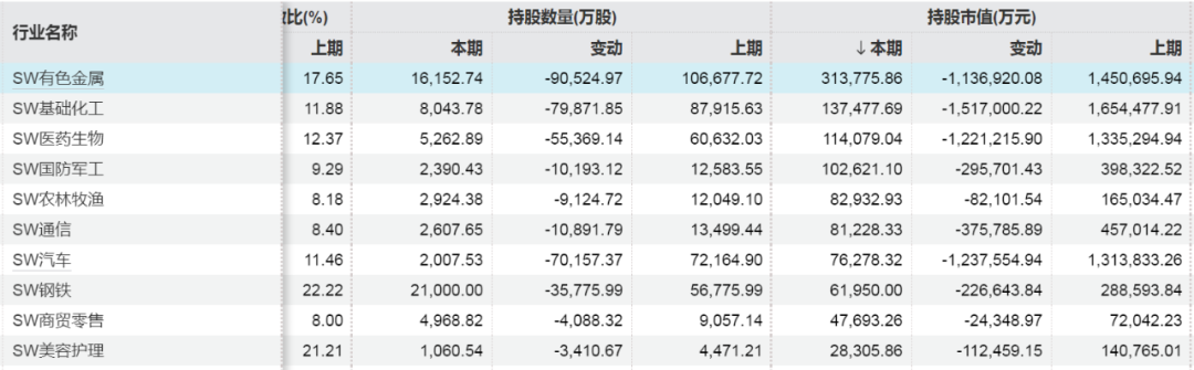 行业方面,社保基金对有色金属行业持仓市值超过30亿元,对基础化工、医药生物、国防军工行业持仓市值均超过10亿元。