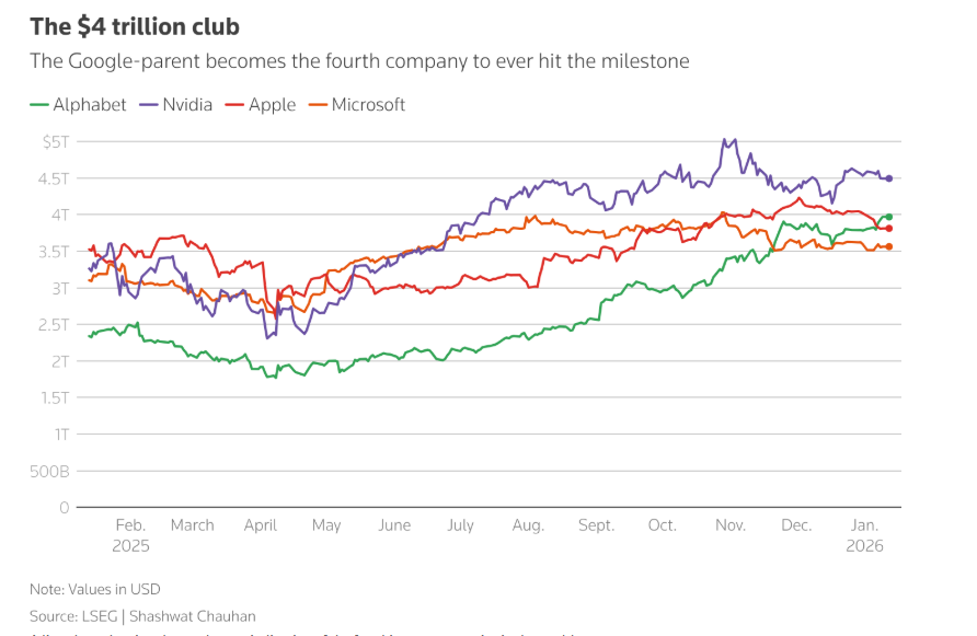 苹果牵手谷歌革新端侧AI Alphabet市值突破4万亿美元大关