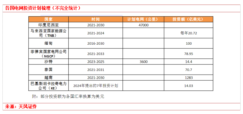 特高压将迎来新一轮建设高峰,项目建设确定性有望进一步增加:同时,2024年7月国家电网年中会议上调2024年投资预算至6000亿元,其中投资方向之一为特高压工程建设,预计特高压工程相关电力设备供应商有望从中受益。
