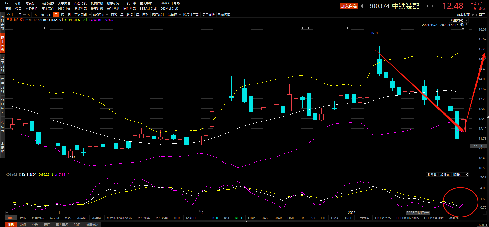 3)技术来看,K线从布林上轨下跌至布林下轨处获得底部支撑,KDJ指标底部双底加上金叉,显示出短期较强的反弹趋势!