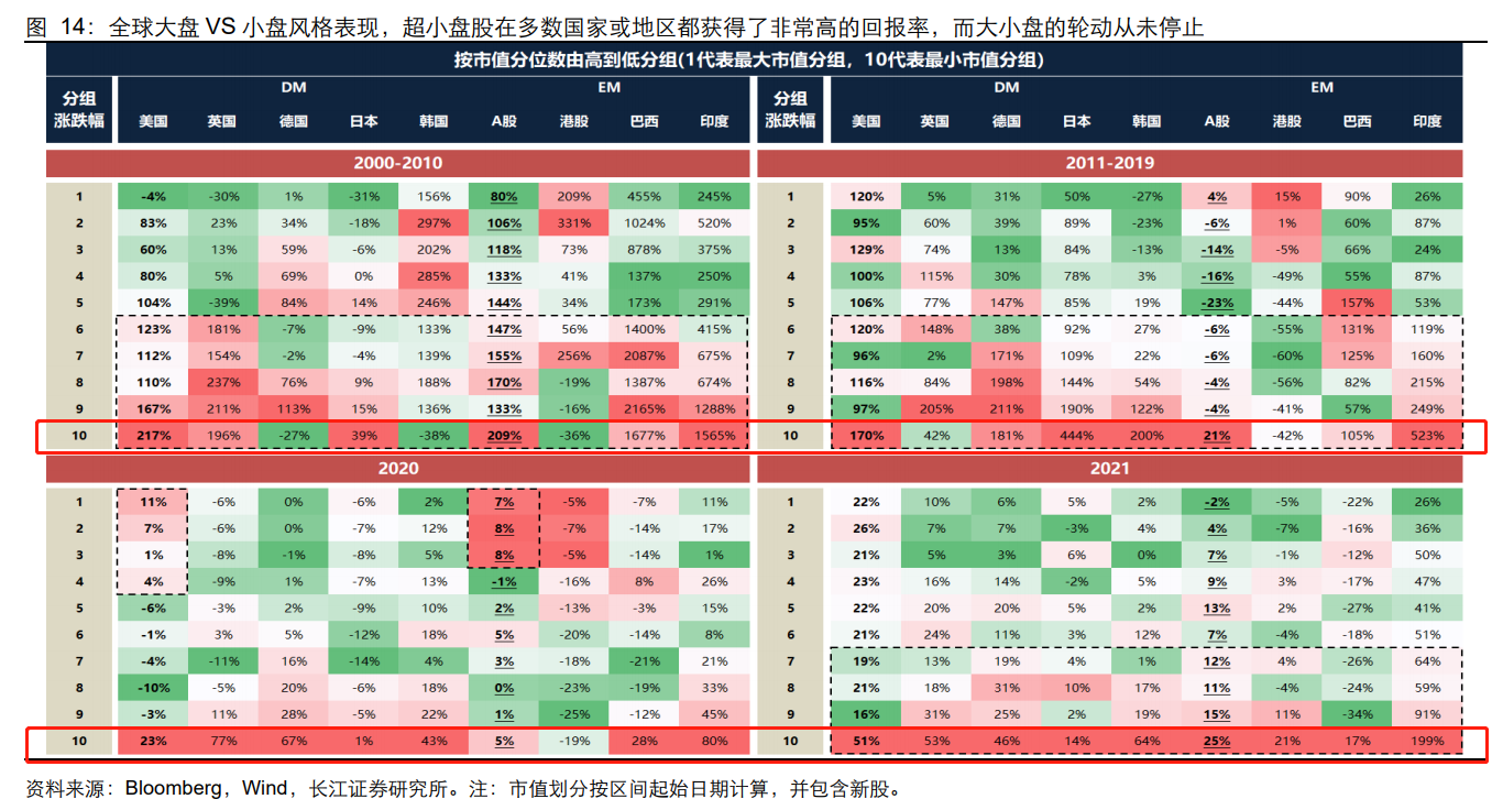 从全球视角看,超小盘股在多数国家或地区都获得了非常高的回报率