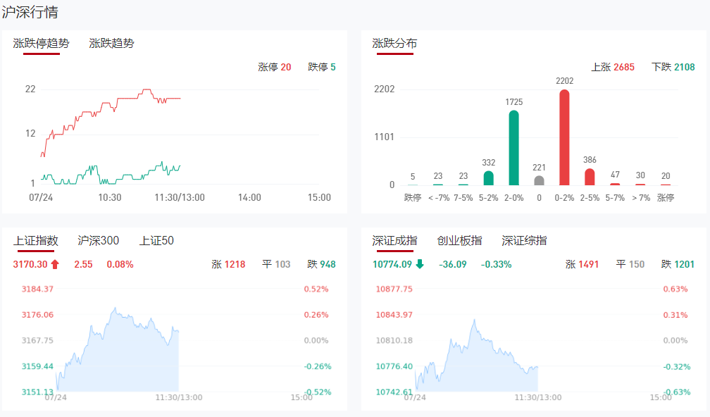 市场早盘走势分化,沪指震荡微涨,创业板指冲高回落。