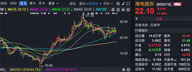 湘电股份此次定增价为17.6元/股,比照其最新收盘价22.1元/股测算,葛卫东目前浮盈近25%。