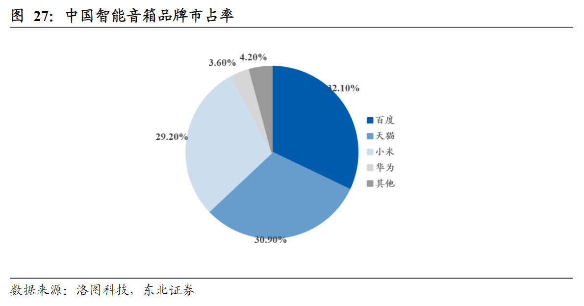 以苹果、小米为代表的玩家已深耕智能音箱市场多年,但尚未透露与大模型相关的技术研发具体进展。小米在今年的一季度财报电话会议中透露,小米AI大模型未来或与小爱同学结合,并表示小爱同学是小米非常重要的IoT语音入口。4月中旬,雷军发文指出,已经在研发一些技术和产品,对于大模型技术将坚决拥抱。