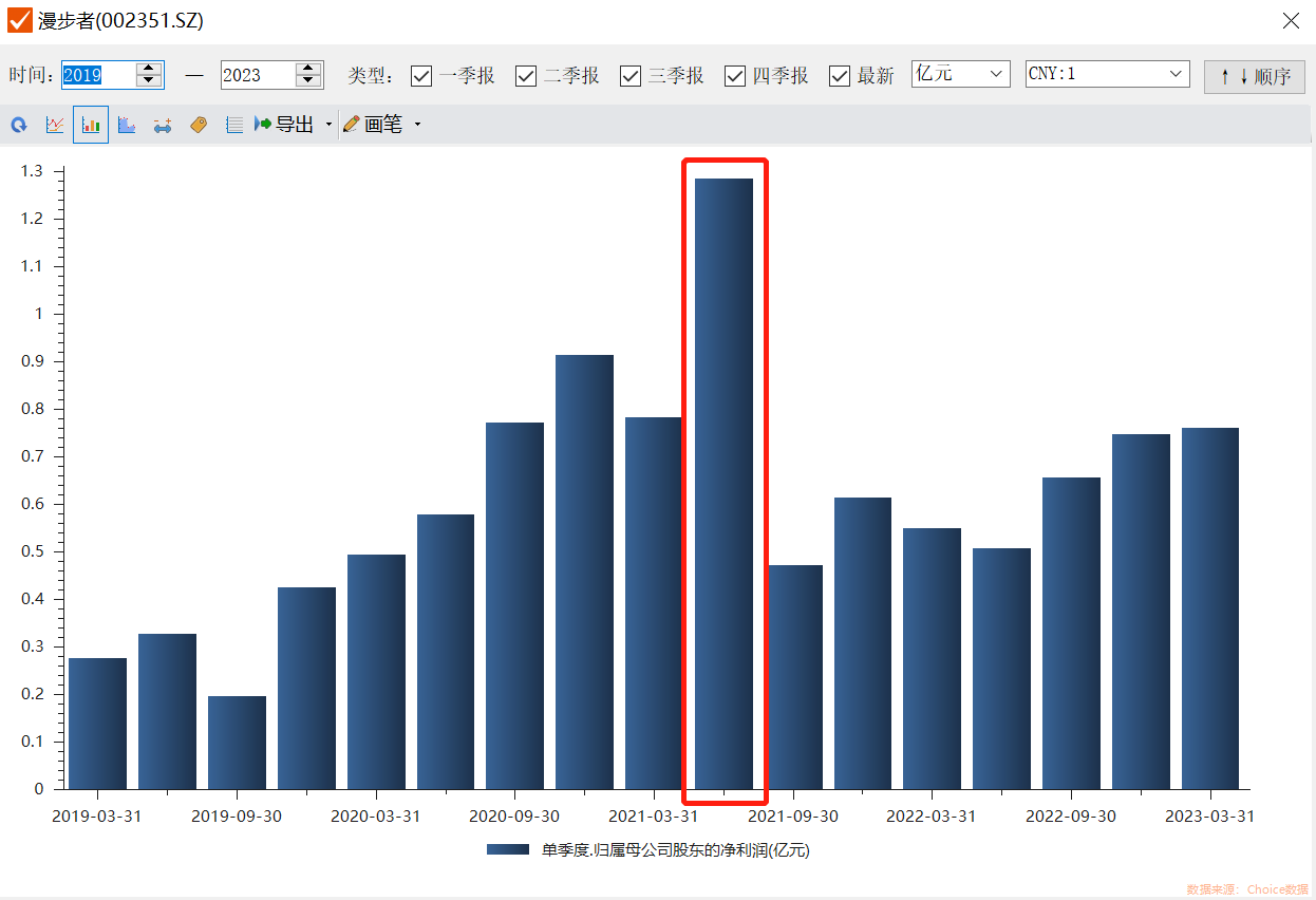2023年一季度,漫步者在此前低基数的基础上业绩出现回暖,公司实现营业收入5.43亿元,同比增长13.5%;净利润7620.52万元,同比增长38.18%,但相距2021年巅峰时期的业绩水平仍相去甚远。