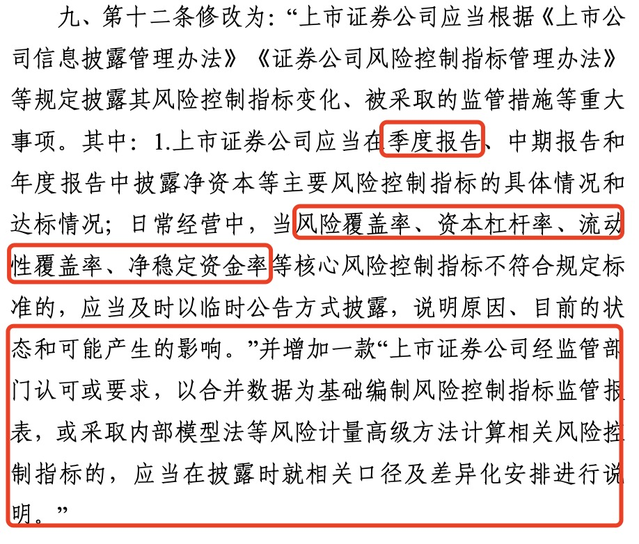 此前,相关规定要求上市证券公司应当在中期报告和年度报告中披露所有风险控制指标情况。