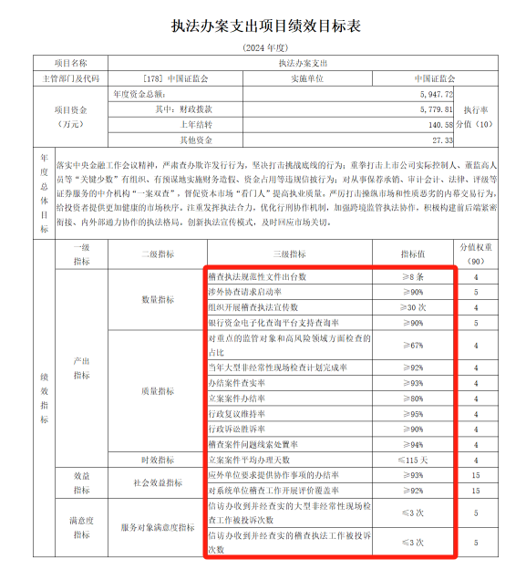 除此外,证监会今年预算透露多个重磅信息,监管监测审查、执法办案KPI清晰明确。
