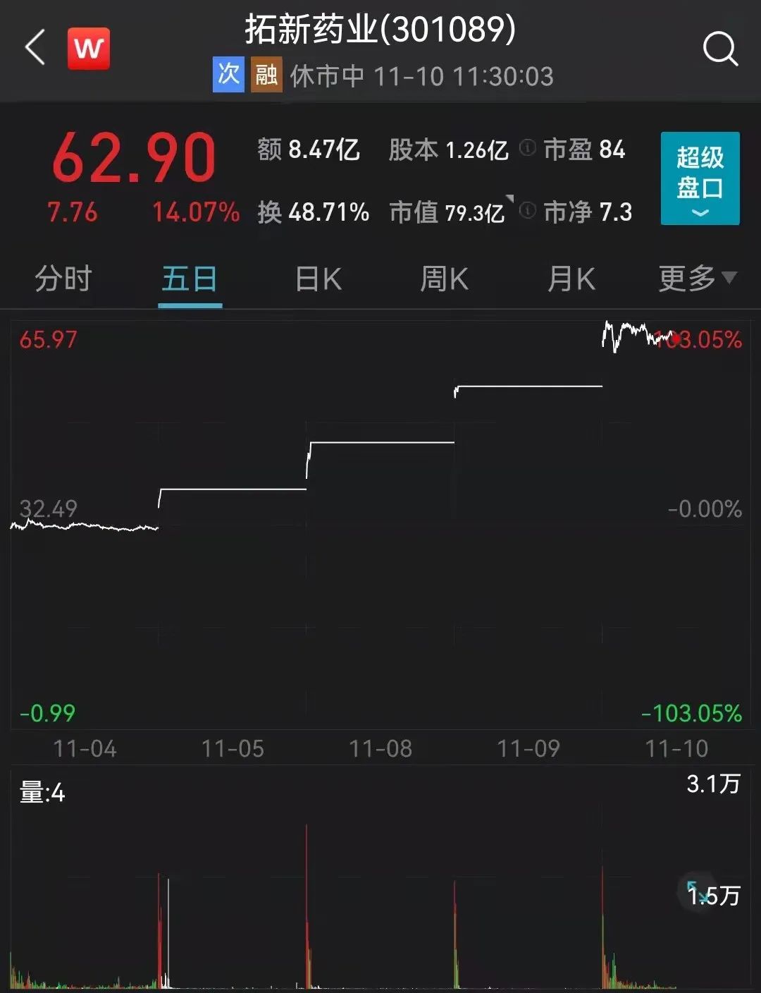 借着原料药政策利好,今日上午拓新药业再度大涨,近4个交易日累计上涨97.12%,大有竞争“年度牛股”称号的架势。